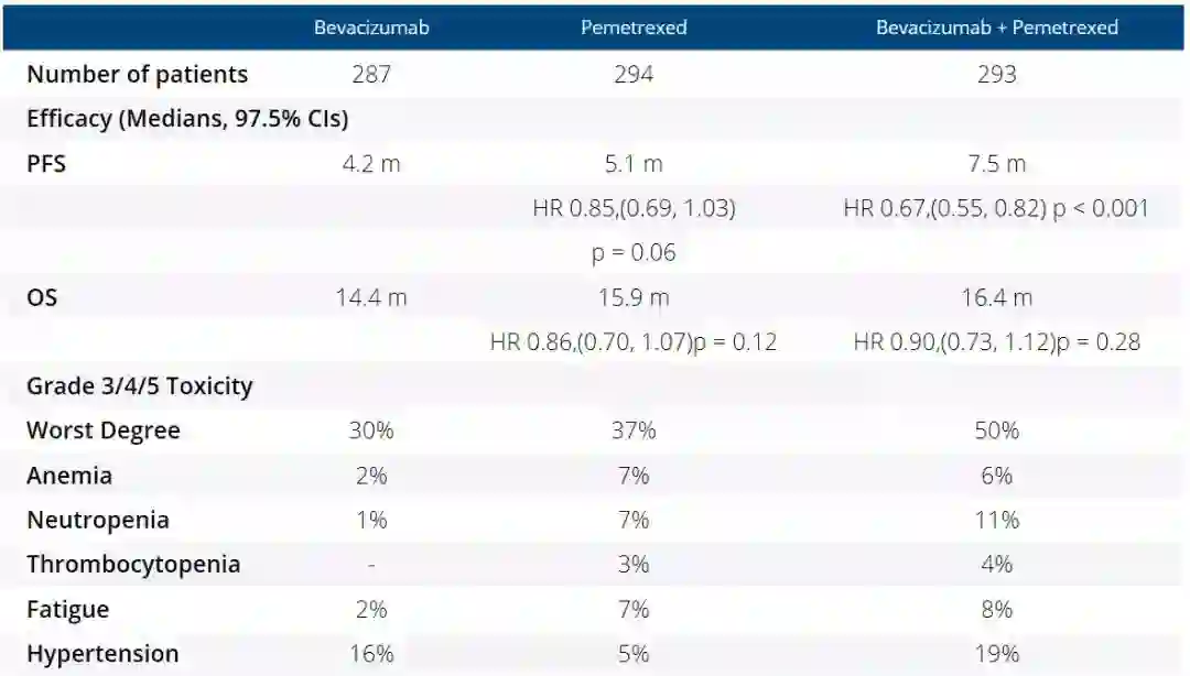 晚期非鳞NSCLC维持治疗,培美曲塞、贝伐珠单抗单药?还是双药联合?
