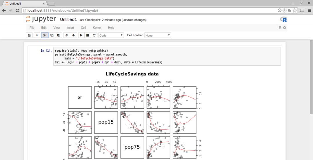 加载IRKernel并启用后,就可以在notebook环境下使用R了。