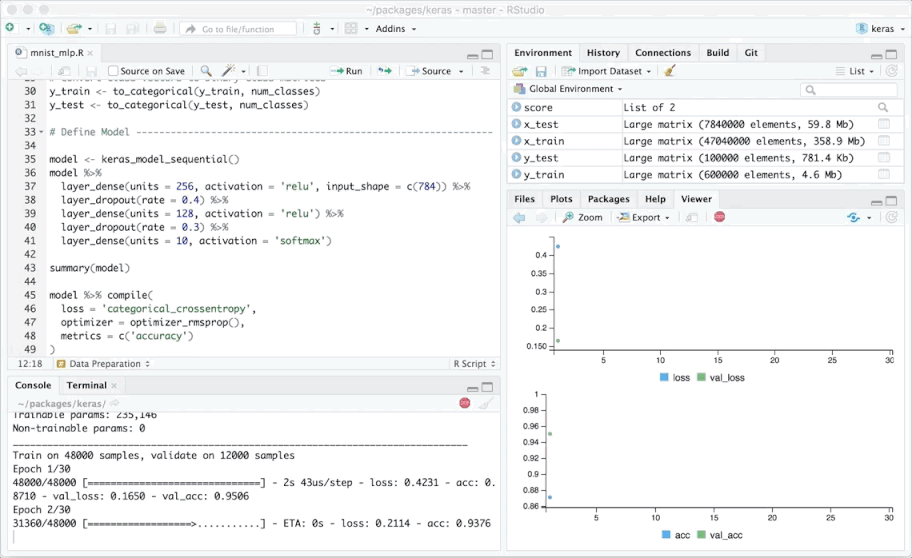 在Visual Studio下,数据科学家能够以便利的结构组织和管理相关文件,并使用R代码、R文档、R Markdown、SQL请求、保存的过程等的模板。同时提供了包管理器和SQL Server集成。