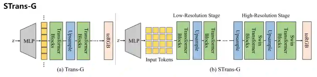 文中提出了一种新的基于Transformer的GAN网络架构设计,生成器部分称为STrans-G。