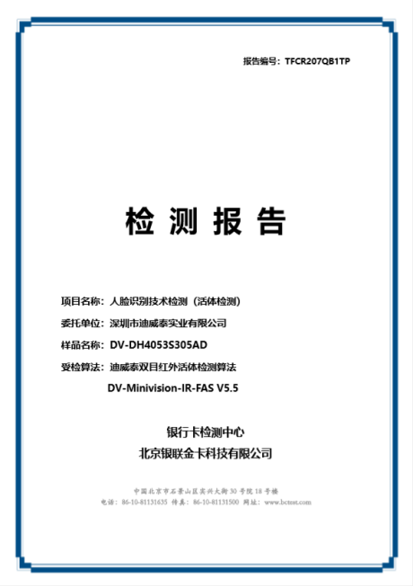 近日,小视科技自研的红外活体检测算法,结合迪威泰双目摄像头,正式通过了国家金融 IC 卡安全检测中心 - 银行卡检测中心(BCTC)的权威技术测试,获得「增强级」活体检测的技术认证,达到国家金融权威机构认证的增强级安全标准。