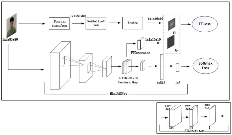 具体来说,在活体检测算法中,研究人员采用了一种基于傅里叶频谱图辅助监督的静默活体检测方法,模型架构由分类主分支和傅里叶频谱图辅助监督分支构成,在模型训练的过程中,结合真假脸数据的频域信息进行优化,增强活体模型的判别能力。