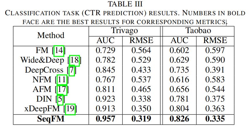 本文不是第一个使用 self attention 对序列建模的方法,没有将 SeqFM 和使用 self attention 的其他序列建模方法进行对比实验。