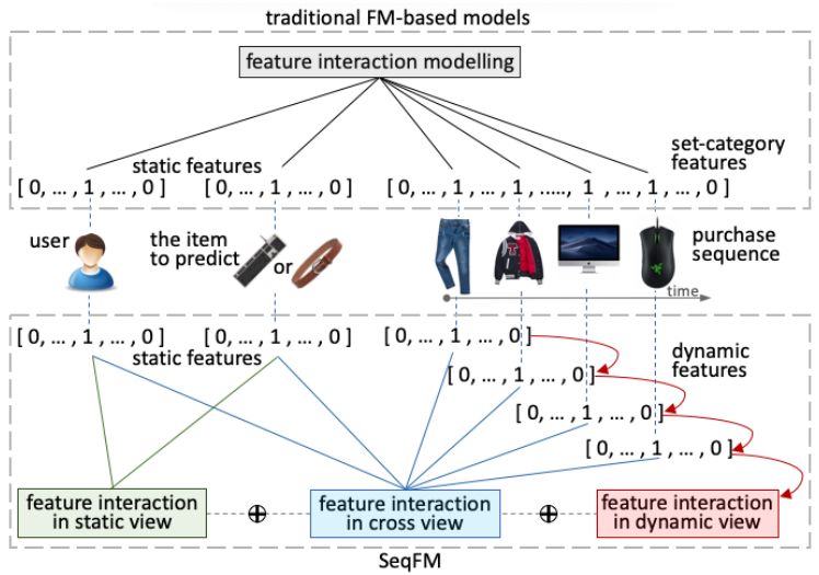 举例说明 SeqFM 与传统的 FM-based 方法的区别