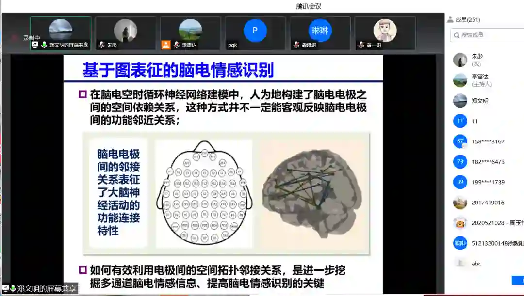 东南大学的郑文明教授作了题为“脑电情感分析与识别”的讲座,系统地讲解了情感理论基础,随后深入分析了脑电情感分析与识别的相关工作,同时介绍了多模态生理情感数据库的构建。