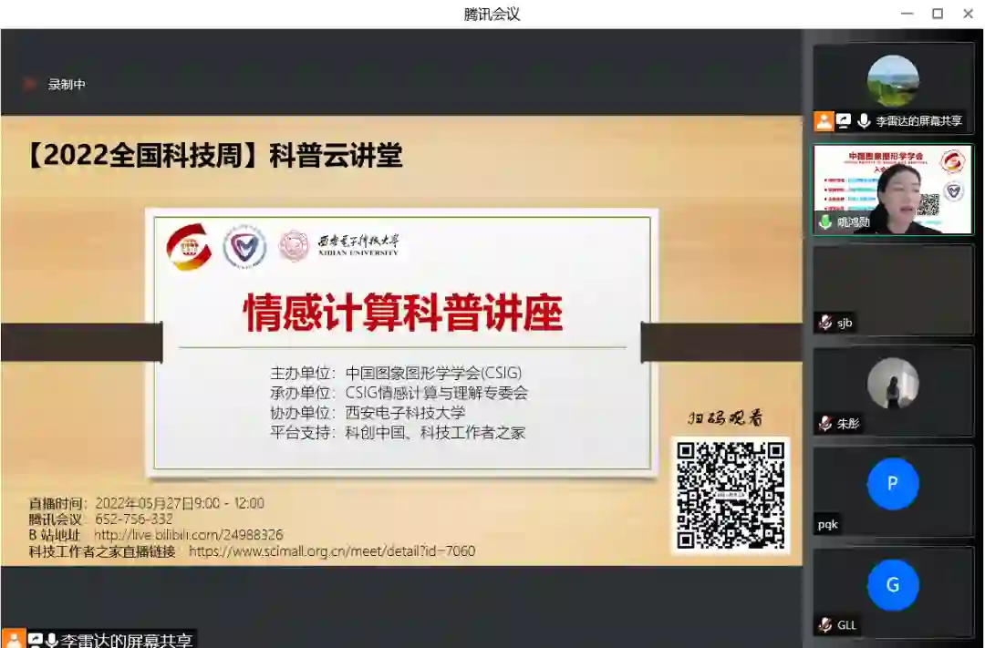 本次活动采用腾讯会议,哔哩哔哩直播和科技工作者之家三个平台同时进行了直播,累计播放量达36,800余次,线上活动气氛热烈。活动得到了中国图象图形学学会的大力支持,促进了国内高校、科研院所以及相关高新技术企业从业人员对情感计算领域的了解,有助于推动国内情感计算领域的研究与发展。