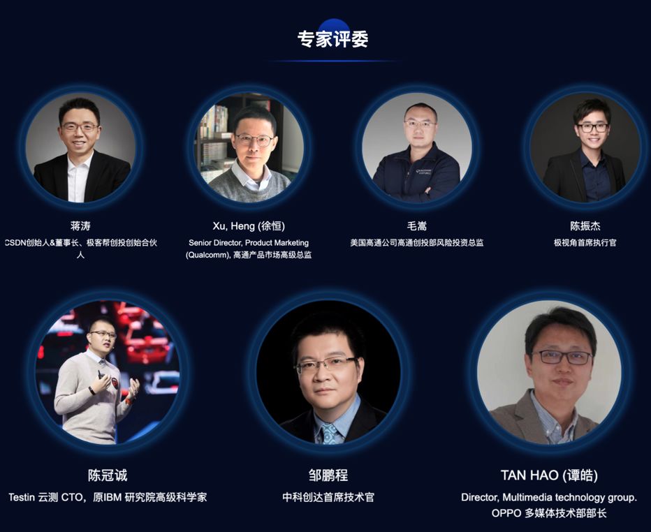 大赛发起人 Qualcomm 将联合CSDN、Testin云测、极视角、中科创达、OPPO、TensorFlow Lite 和创业邦的行业专家组建【评选组委会】,两轮参赛作品都将由【评选组委会】进行打分与评判。