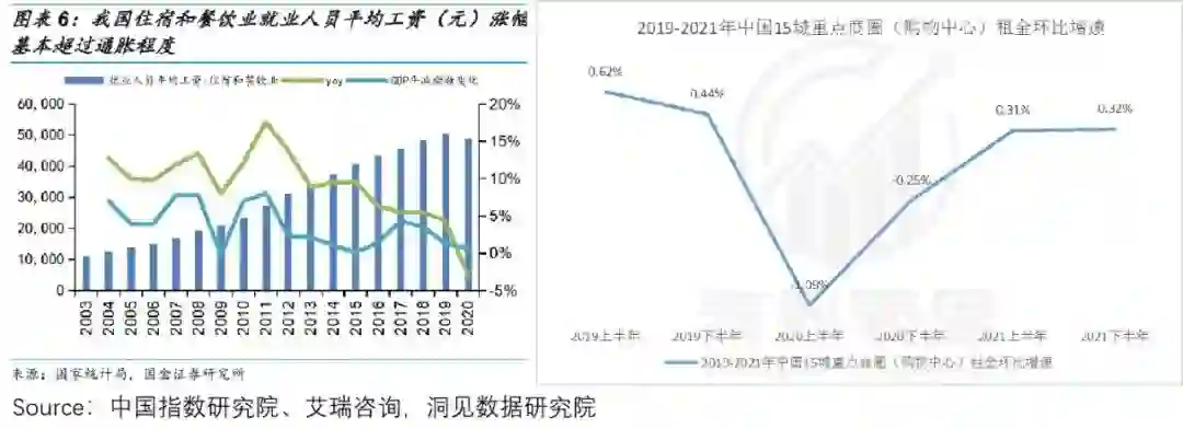 如下图,人工成本增长维持了多年以来的增长趋势;而租金成本从2020下半年开始,也呈现V型反弹,增速逼近疫情前水平。