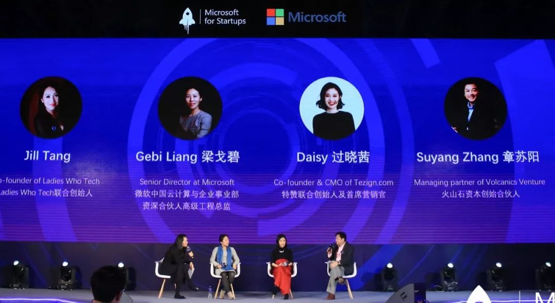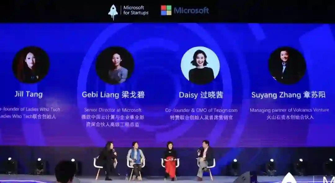 在刚结束的微软加速器·上海 Innovation Day 上, Ladies Who Tech 联合创始人Jill Tang、微软中国云计算与人工智能事业部资深合伙人高级工程总监梁戈碧、特赞联合创始人及首席营销官过晓茜、火山石资本合伙人章苏阳就“她力量——创业中的女性领导力”展开讨论,探讨女性在科技领域或是科技类公司中的影响力。
