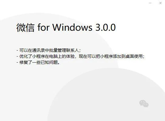 微信 Windows 端可更新 3.0.0 版本,支持批量管理联系人及优化小程序使用体验。