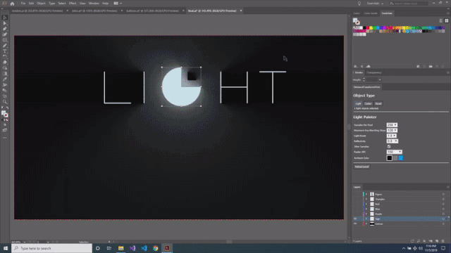 要让暗黑的背景亮起来,就在前面画个灯箱。灯箱原本是普通的白色长方形,但只要一键让它发光,就能照亮黑暗: