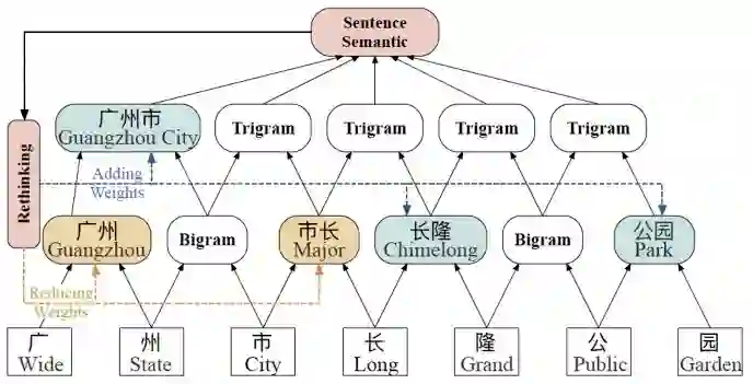 对于中文任务来说,句子中的词汇信息显然是重要的,但是先对句子进行分词,在词序列的基础上进行序列标注任务,这种 NER 模型架构的效果受限于分词的准确性。因此,如何将句子中的词汇信息合理的整合到基于字的序列标注模型中,是中文 NER 主流研究方向之一。