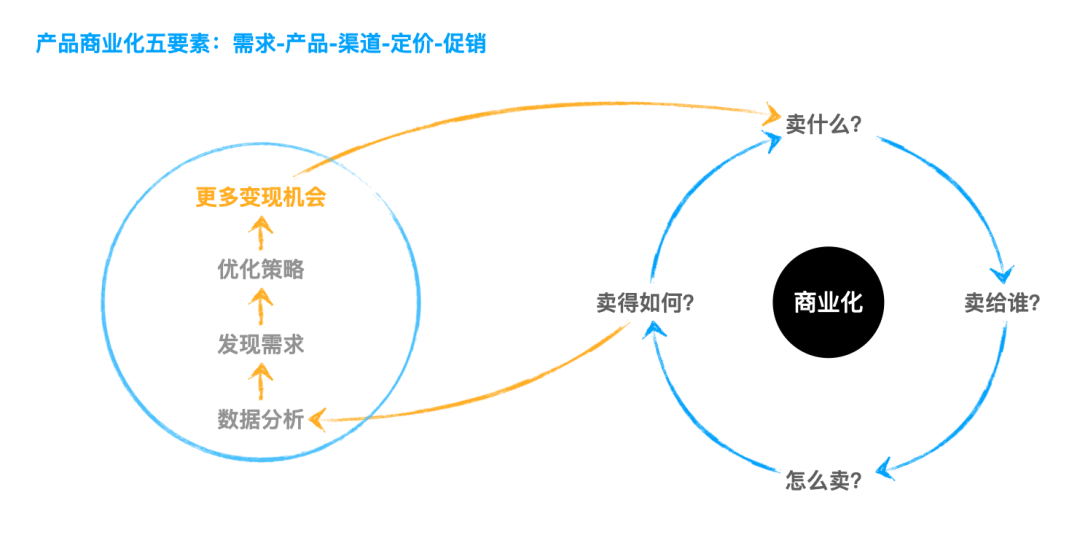 具体在完成商业化过程中,需要基于产品商业化现状,通过数据分析,洞察出更多需求,发现更多变现机会。
