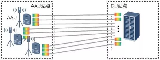 ① 与传统4G宏站一致,CU与DU共硬件部署,构成BBU单元。