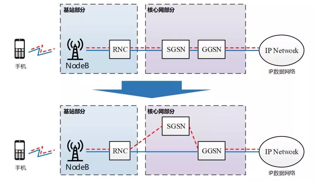 2G时代,用户面和控制面没有明显分开。3G时代,把两个面进行了分离。