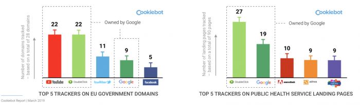 Cookiebot对爱尔兰卫生服务网站的15个页面进行了扫描,发现其中近四分之三页面都含有广告追踪工具;而就法国政府有关流产服务的一个页面而言,有21家不同的公司正在对这个页面进行监控。一个有关产假的德国网页遭到了63个追踪工具的监控,而在提供艾滋病病毒症状、精神分裂症和酒精中毒相关信息的卫生服务网页上则发现了谷歌DoubleClick追踪工具。
