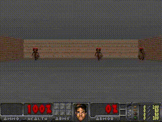 我们把在虚拟幻境中训练的智能体放在原始 VizDoom 场景中进行测试。