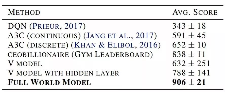 表 1:多种方法实现的 CarRacing-v0 分数。