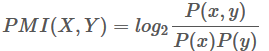 Pointwise mutual information: how much more do events x and y co-occur than if they were independent