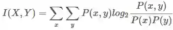 Mutual information between 2 random variables X and Y