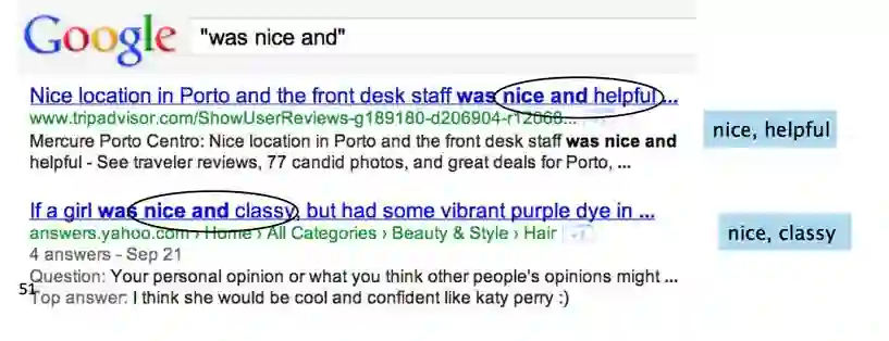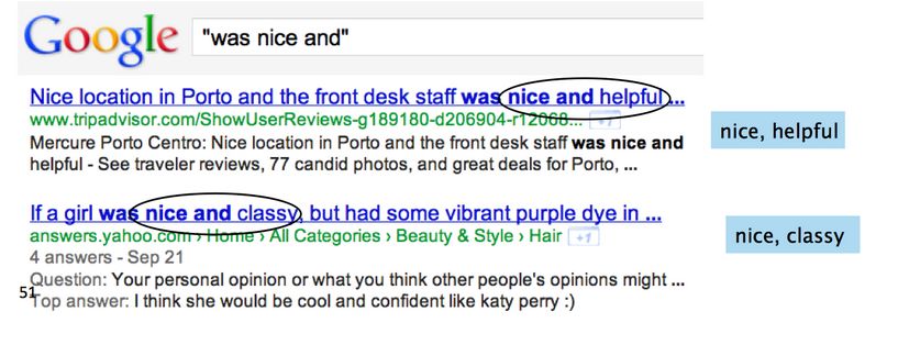 2. 通过 google 搜索来查询 conjoined 形容词,eg. “was nice and”