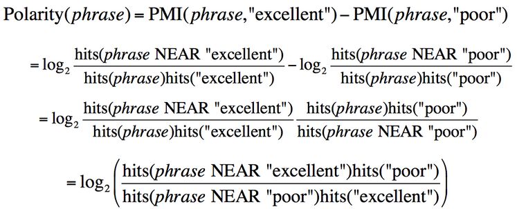 一般来说 baseline 的准确率是 59%, Turney algorithm 可以提高到 74%。