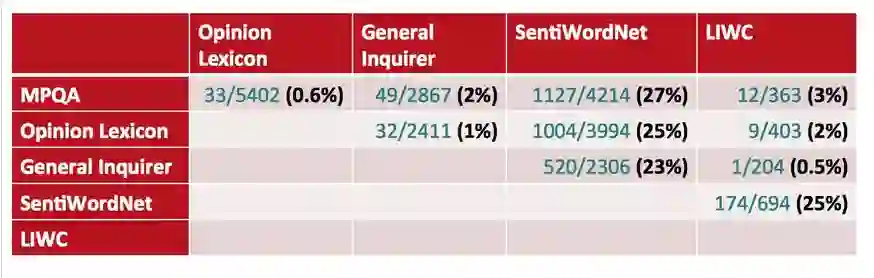 看下各个词库的 disagreements between polarity lexicons