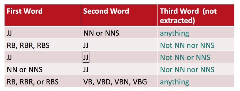 首先找到产品评论里的高频短语,然后按规则进行过滤,可用的规则如找紧跟在 sentiment word 后面的短语,”…great fish tacos” 表示 fish tacos 是一个可能的 aspect。