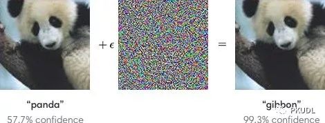 ,重要的是扰动后的图片人眼是不会分类错误的,甚至都无法察觉加了扰动。比如下图将一个大熊猫的图片进行很小的扰动就会将其分类为长臂猿。也就说明当今被人们广为称道的深度学习模型是如此的脆弱不堪。