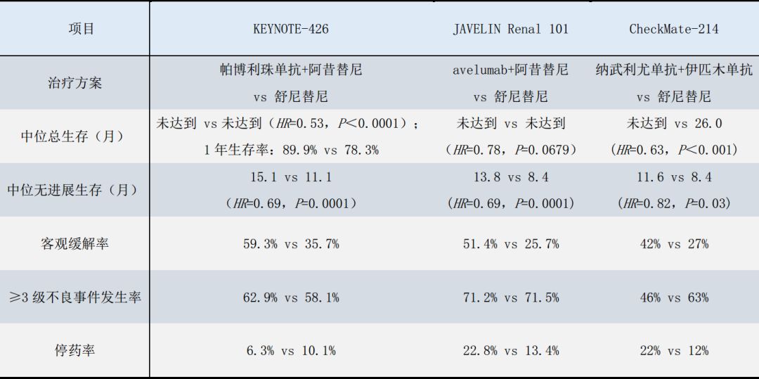 表1.免疫疗法一线治疗肾细胞癌疗效比较