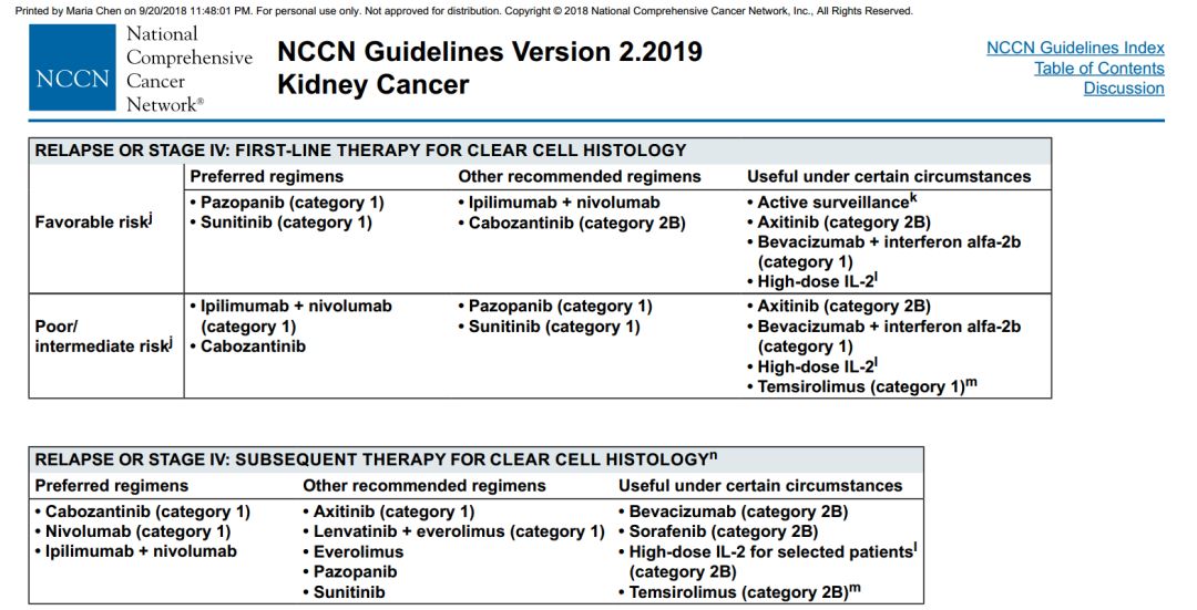 图4.NCCN指南晚期肾透明细胞癌治疗策略