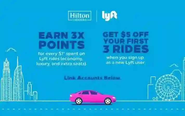 于是Lyft在2019年和希尔顿酒店进行了合作,用户可以将自己的希尔顿会员账户和Lyft账户打通,这时,Lyft用户就可以享受打车3倍积分,拼车2倍积分的福利,而且这一切奖励与之前的Delta SkyMiles福利并不冲突!