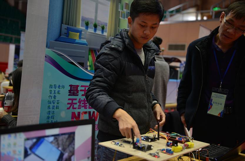在现场,所有的入围全国总决赛的参赛队伍都拿出了自己参赛作品的最佳展示状态,在作品设备准备、作品宣传、作品讲述与答辩等方面下足了功夫。参与评审的专家们不仅能从专业和行业的角度对于参赛作品进行了细致和耐心的评价,而且还与参赛团队成员就作品研发的创意、技术及未来的市场前景等方面深入了多方面交流,并对本组所评作品提出了可行的改进意见,从而帮助参赛团队能能从产业界和行业界的角度来理解和完更好地完善作品,从而最终做到了公平、公正评价每一个参赛作品。