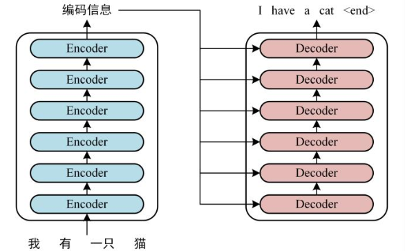首先,我们来看 Transformer 的整体结构,如下是用 Transformer 进行中英文翻译的示例图: