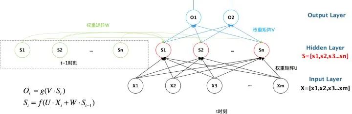 下图是一个简单的循环神经网络,它由输入层、隐藏层和输出层组成。