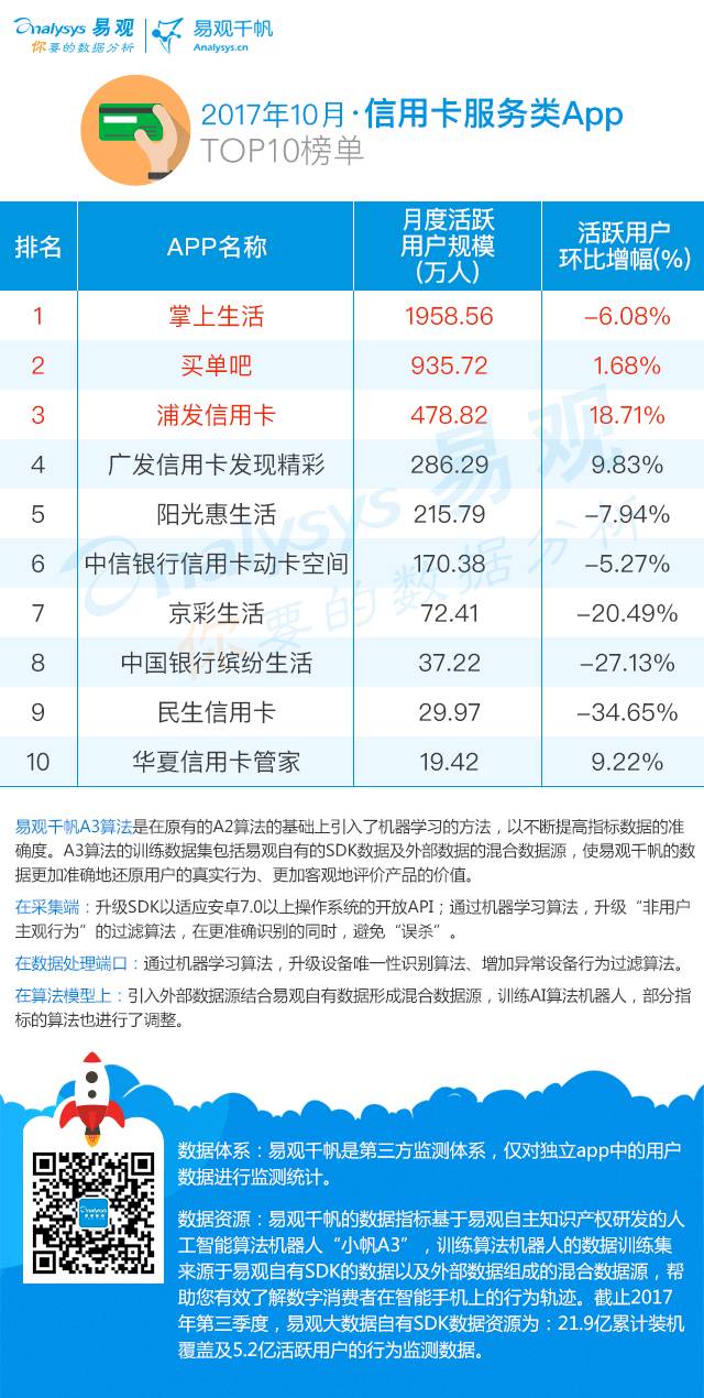 Top10榜单内,剩下的京彩生活、民生信用卡、华夏信用卡管家、 和浙商信用卡。其中民生信用卡的10月跌幅达到了34.65%。