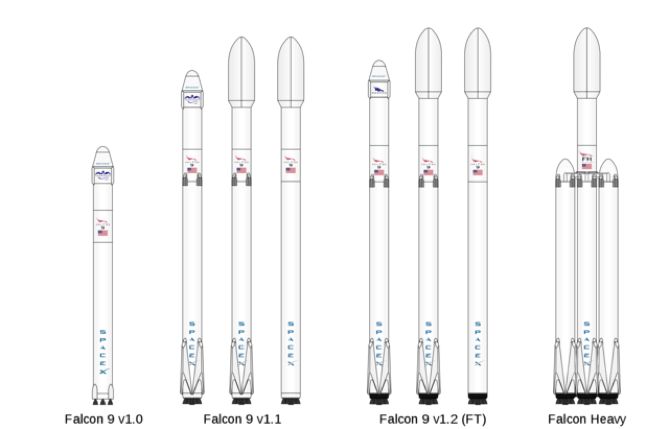 不同版本的猎鹰9号火箭,和重型猎鹰火箭 丨 Wikipedia