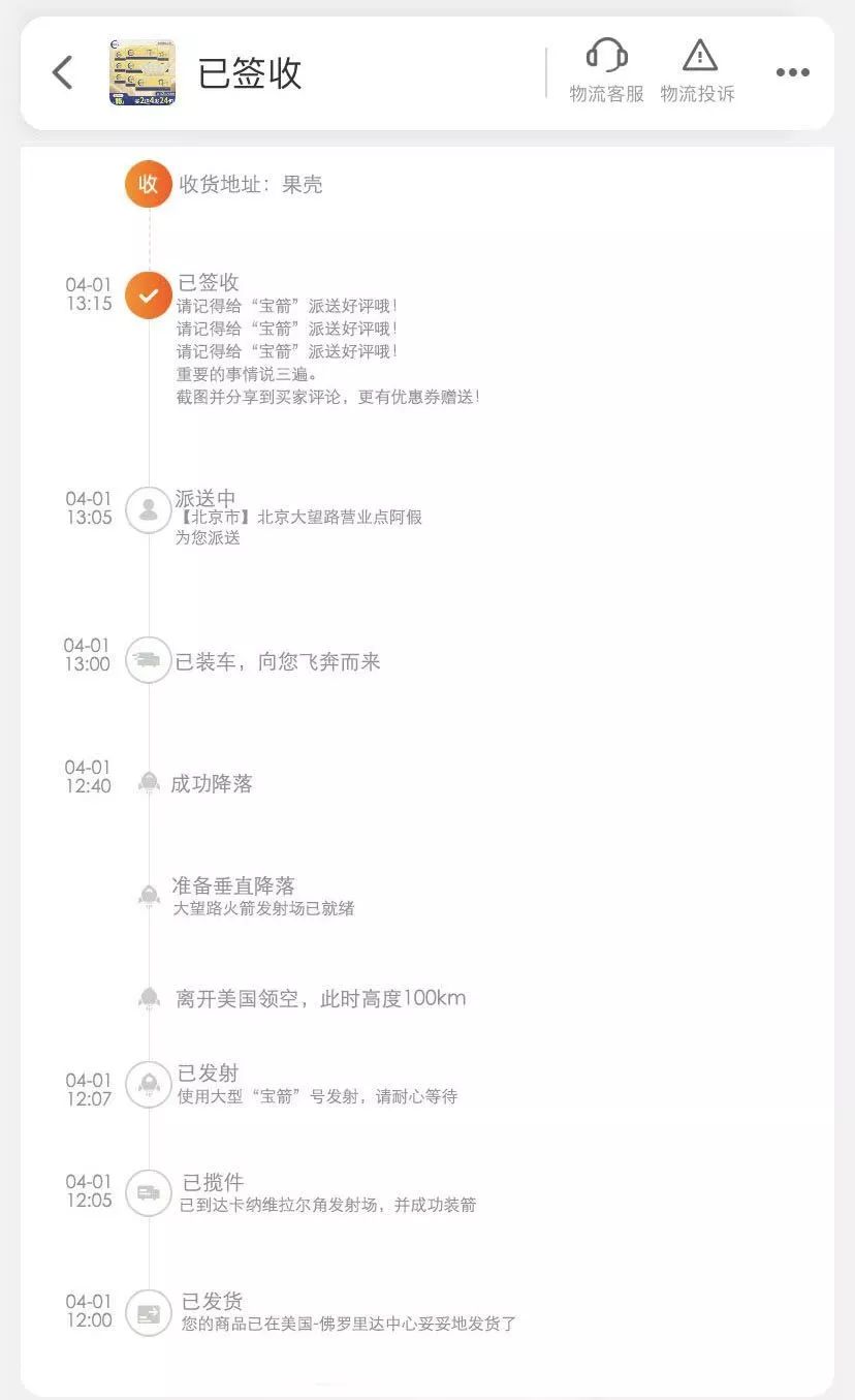 也不知道是不是姓马的老板都艺qian高duo人胆大。今天我们收到一封来自“淘宝神秘小组”的计划书:“淘宝推出了‘宝箭’计划,要研发‘宝箭’号运载火箭来送快递,3-5年内就要投入使用。真火箭,特别快,‘地球1小时’收货不是梦”