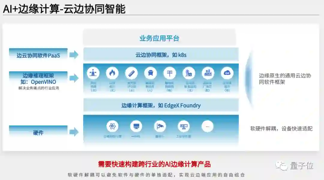首先是云边协同,涉及到云、边、端这样一个三层的考量,主要考虑的就是快速构建AI产品的能力,然后能够快速构建这种软硬件系统。