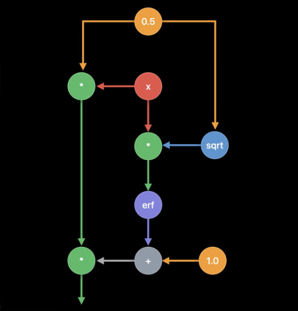 幸运的是,MPSGraph编译器可以将这些原语融合到一个计算内核中,使其在 GPU 上尽可能高效地运行。但是,如果你有一个操作不可能使用所提供的原语实现,或者真的很难实现,那么就没法这样做了。我真是不明白,为什么苹果在引入这样一个新的 API 时总是忽略进行完全定制的能力?!。
