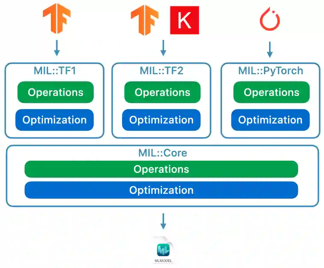 用于 TensorFlow (1.x 和 2.x)、tf.keras 和 PyTorch 的现代转换器。所有这些转换器都构建在同一个技术栈上,使用了一种称为 MIL 或模型中间语言的东西。对于这类模型,不需要再使用 tfcoreml 或 onnx-coreml。