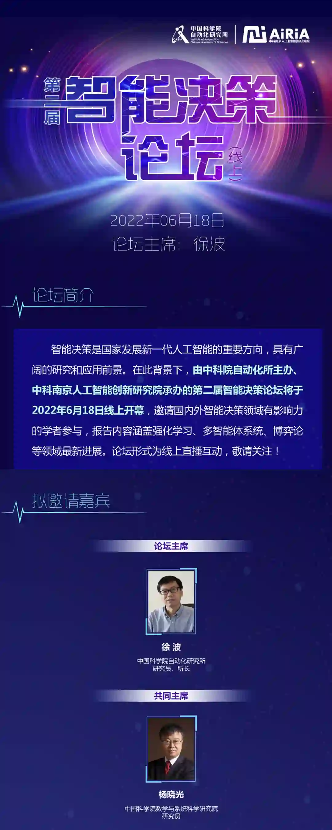 敬请关注 | 6月18日!中国科学院自动化研究所第二届智能决策论坛即将开幕