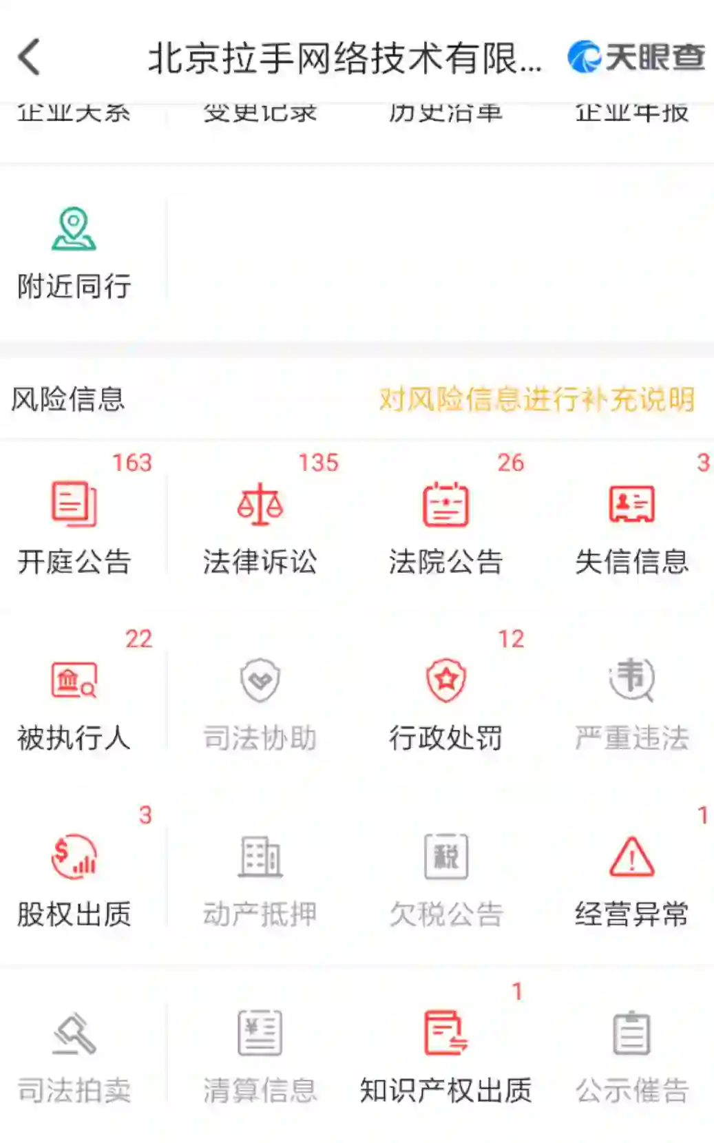 如今,虽然拉手网在工商信息的营业状态显示在业,但据天眼查风险显示,拉手网自身风险达249条,周边风险115条,预警风险102条。其中,公司涉及开庭公告163次,法律诉讼高达135次,法院公告26次,被执行人22条,行政处罚12条,失信信息和股权出质均高达3次。