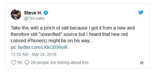 近日经常爆料苹果新品消息的@OnLeaks在推特上给出消息称,苹果即将推出红色款iPhone,从产品阵容上来看,应该包含了iPhone 8、8 Plus和X。
