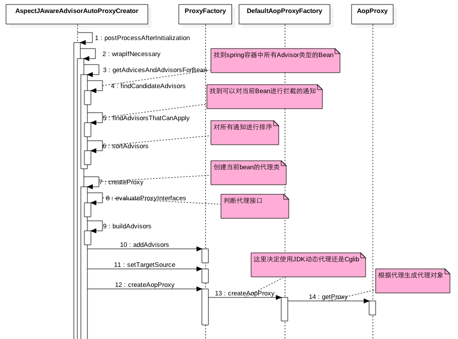 下面看下上面小节“AOP 简单使用”例子中调用 serviceBo.sayHello 时候的时序图从而加深理解: