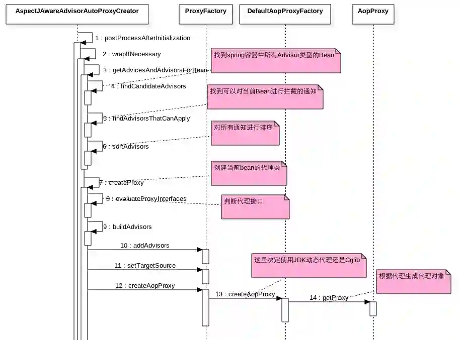 Advisor:这个概念是从 Spring 1.2的 AOP 支持中提出的,一个 Advisor 相当于一个小型的切面,不同的是它只有一个通知(Advice),Advisor 在事务管理里面会经常遇到,这个后面会讲到。