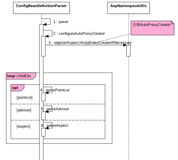 如上时序图 BeanDefinitionBuilder 是一个建造者模式,用来构造一个 bean 定义,这个 bean 定义最终会生成一个 TransactionInterceptor 的实例;