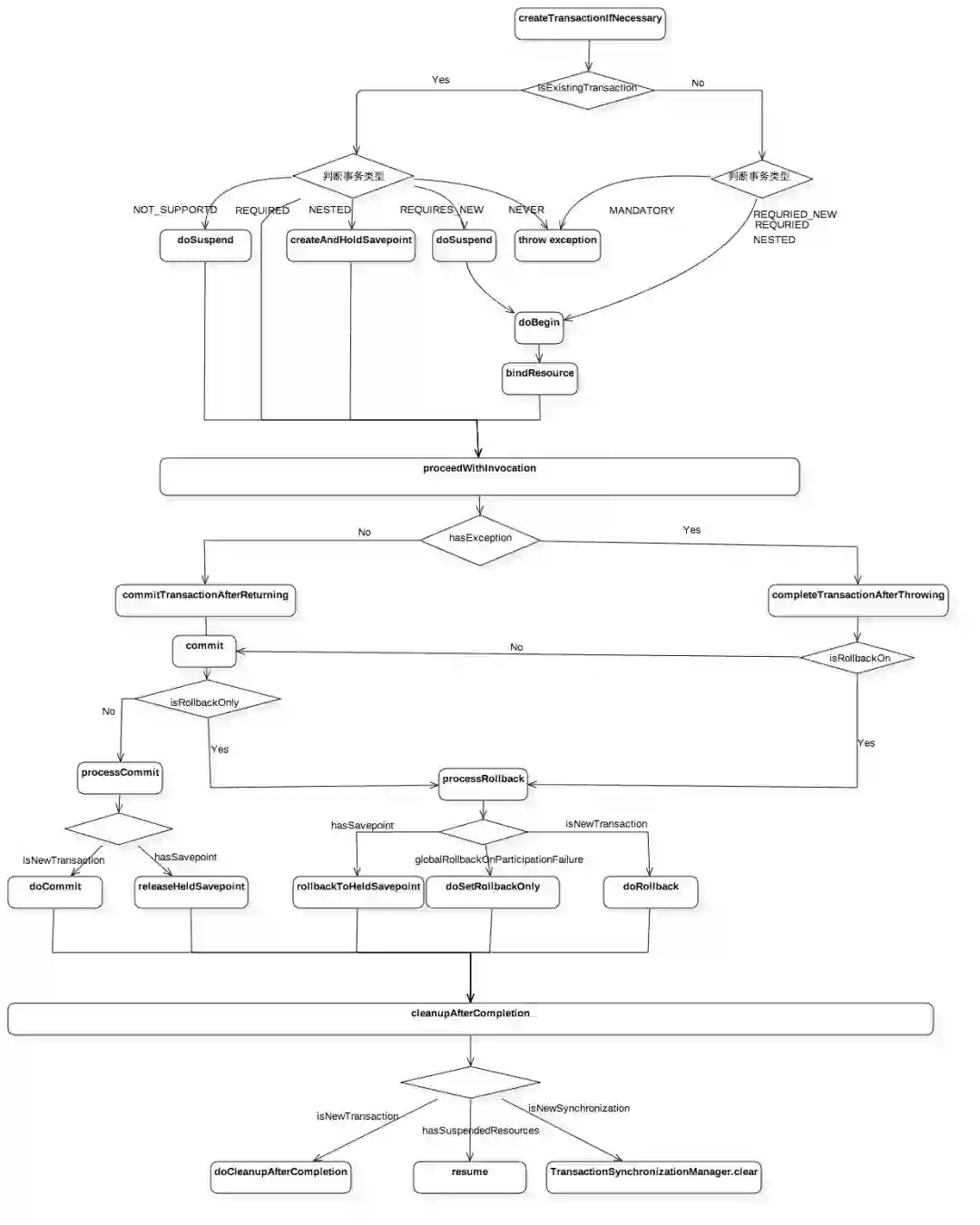 其中 createTransactionIfNecessary 是重要方法,其内部逻辑处理流程如下图:
