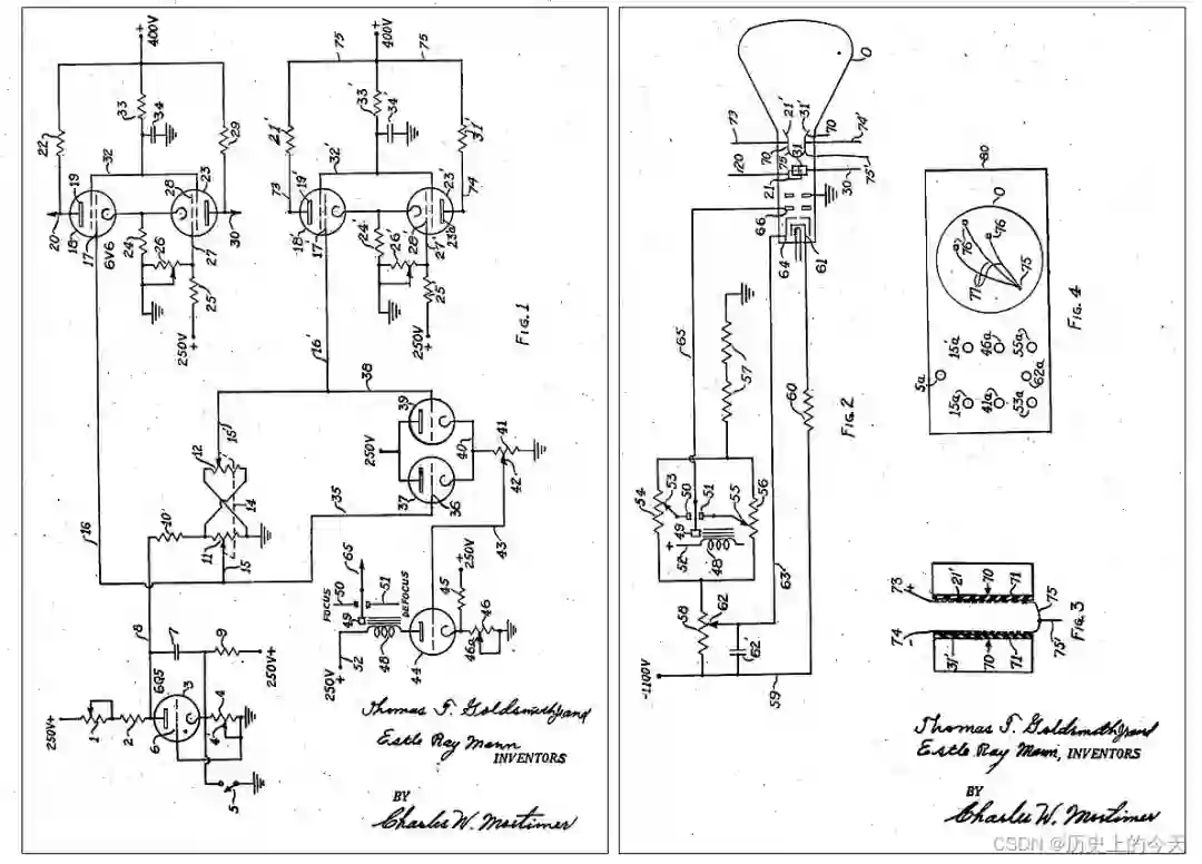 阴极射线管娱乐设备由物理学家 Thomas T. Goldsmith Jr. 和 Estle Ray Mann 发明,两人在新泽西州帕塞克的电视设计师杜蒙实验室工作,专门开发阴极射线管。他们于 1947 年的今天为这个装置注册专利,隔年获批通过,不过并未实际投入大量生产或公开展示,对往后电子游戏产业并无影响。他们的发明灵感来自戈德·史密斯曾研究过的、第二次世界大战期间常用的雷达显示器。