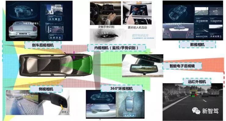 最近几年内视相机开始火热,其功能包括驾驶员的手势识别和表情识别。因为手部动作范围比较广,所以对手势识别相机的角度要求会更严格。表情识别或者虹膜识别则比较精细,范围小,更加注重相机的清晰度。